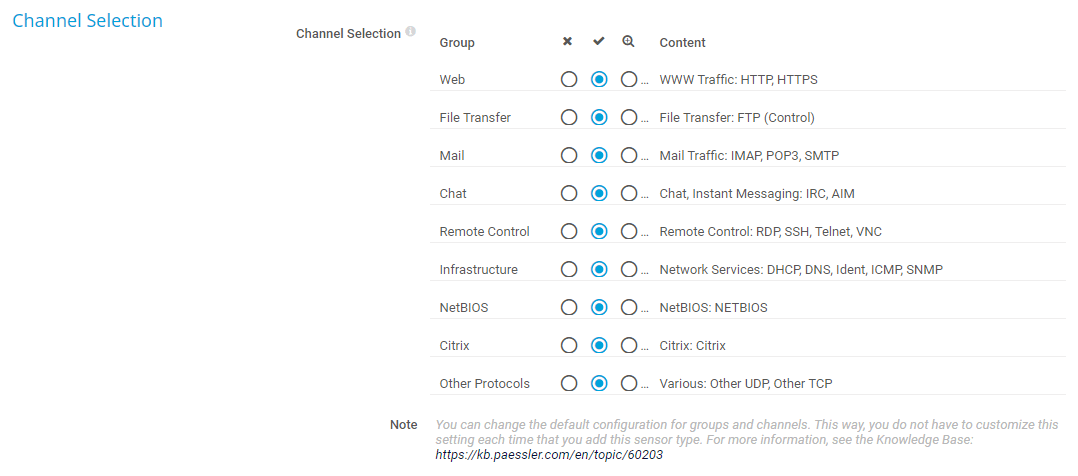 For each group, you can select how many channels the sensor uses, that is, how detailed the sensor divides the traffic: